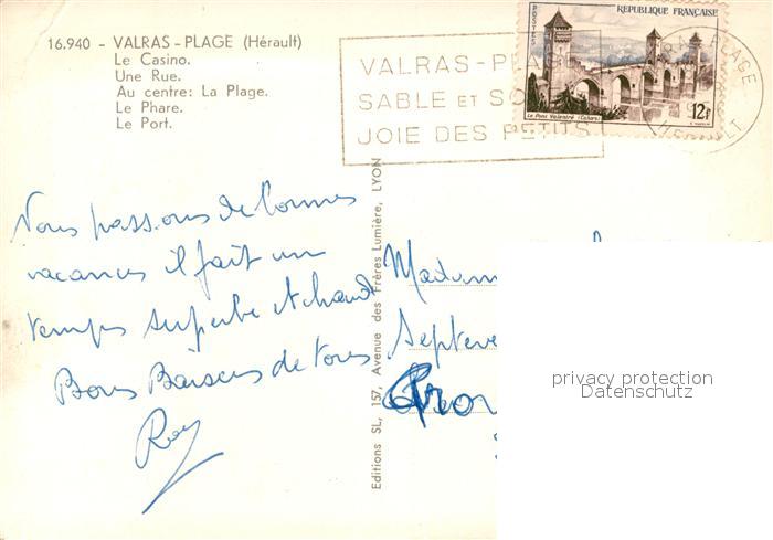 13586660 Valras-Plage Le Casino Une Rue La Plage Le Phare Le Port postalisch gelaufen Erhaltung siehe scans [WerneD78] carte postale Wern Katcode 11170034134324