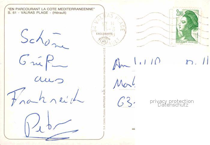 12882098 carte postale Valras-Plage Plage des Branches Badenixe Strand Segeln postalisch gelaufen Erhaltung siehe scans [FriedD77] KatCode: 11170034134324