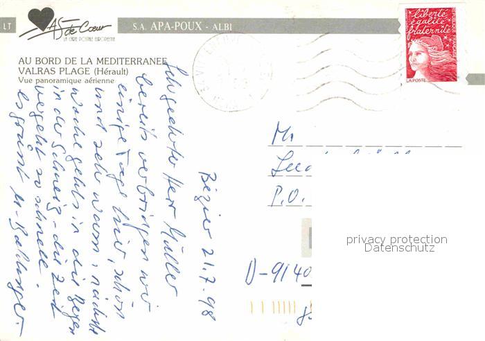 12711670 carte postale Valras-Plage Vue panoramique aérienne postalisch gelaufen Erhaltung siehe scans [FriedD77] KatCode: 11170034134324