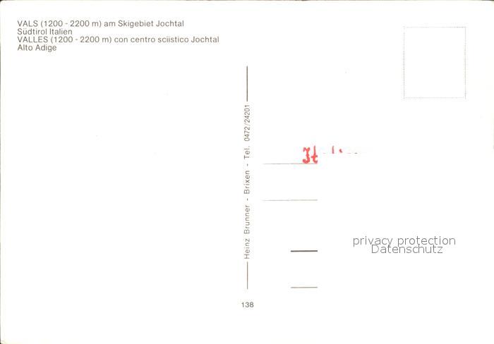 72340431 Vals Muehlbach Suedtirol Jochtal Skigebiet Schlepplifte postalisch nicht gelaufen Erhaltung siehe scans KatCode: 11390332070330