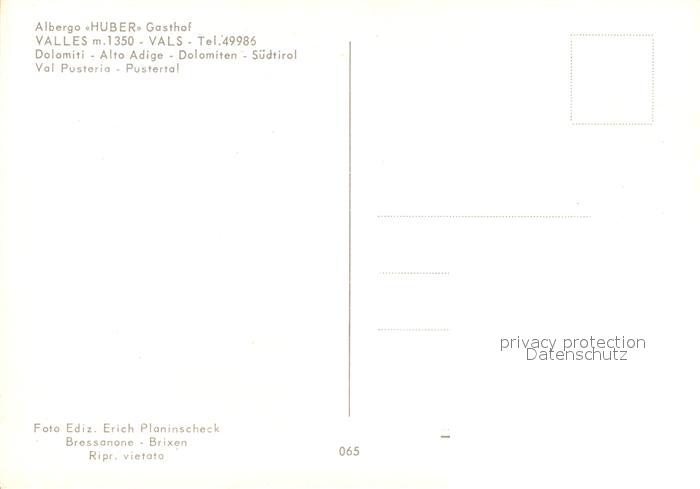 73234891 Vals Tirol Albergo Huber Gasthof Ortsmotiv mit Kirche Bergsee Dolomiten postalisch nicht gelaufen Erhaltung siehe scans [FriedD77] KatCode: 11390332070362