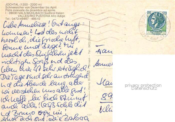 72796738 alte Postkarte Vals Tirol Jochtal Skifahrer Lift Winter postalisch gelaufen Erhaltung siehe scans [KathaD81] KatCode: 11390332070362