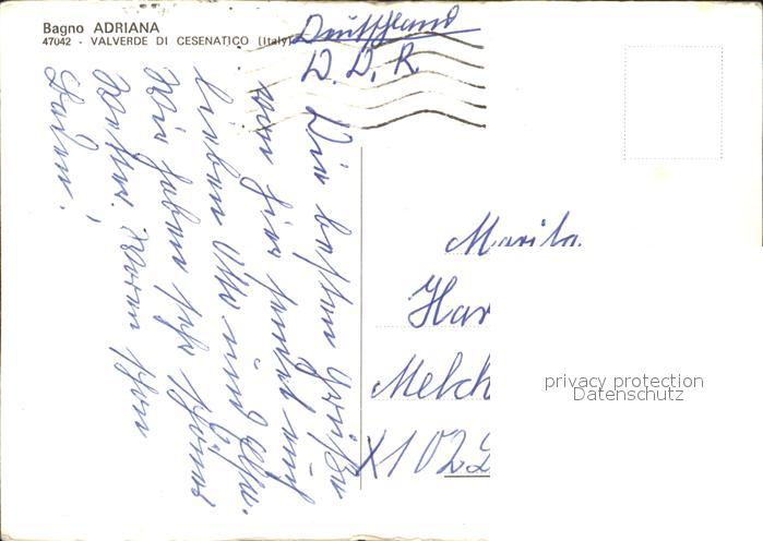 old postcard Valverde di Cesenatico Bagno Adriana Restaurant Bar Terrasse Strand Hotel postalisch gelaufen Erhaltung siehe scans
