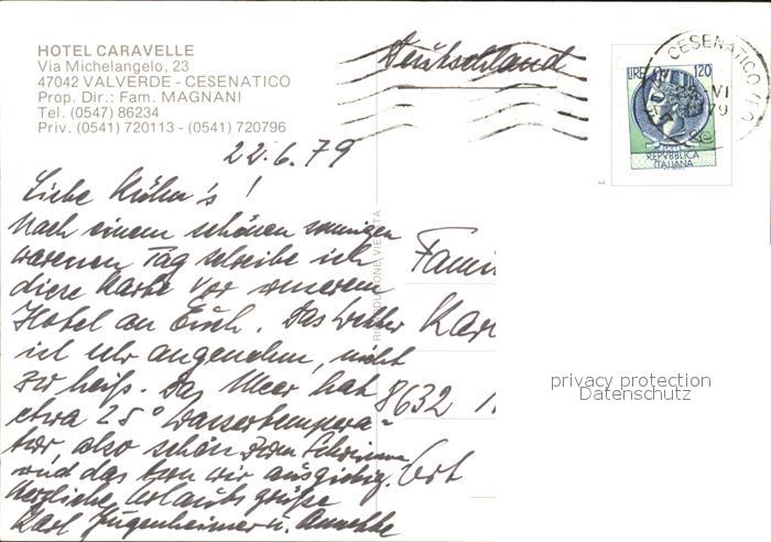 old postcard Valverde di Cesenatico Hotel Caravelle postalisch gelaufen Erhaltung siehe scans