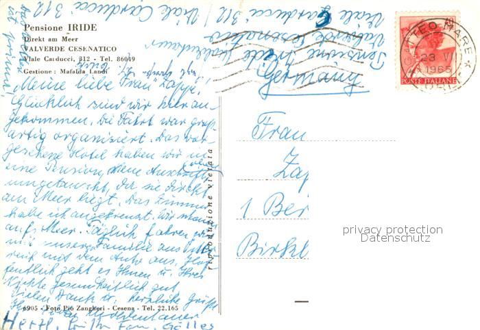 73711388 Valverde di Cesenatico Pensione Iride Aussenansicht postalisch gelaufen Erhaltung siehe scans [LiesaD40] old postcard Lies Katcode 11240