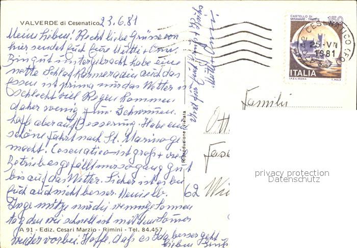 old postcard Valverde di Cesenatico Strand Appartements postalisch gelaufen Erhaltung siehe scans