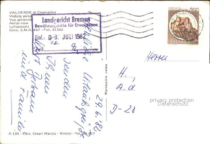 old postcard Valverde di Cesenatico Veduta aerea Strand Kueste Blumen postalisch gelaufen Erhaltung siehe scans