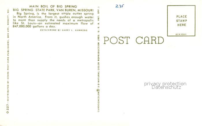 73051240 Van Buren Missouri Main Boil Big Spring postalisch nicht gelaufen Erhaltung siehe scans [KathaD81] KatCode: 14140270000000