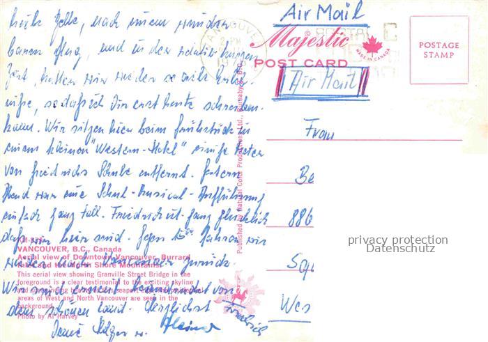 74148745 old postcard VANCOUVER BC Canada Aerial view of downtown postalisch gelaufen Fliegeraufnahme Erhaltung siehe scans [FriedD77] KatCode: 14110