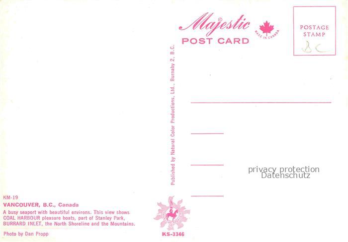 74091425 VANCOUVER BC Canada Coal Harbour Stanley Park Burrard Inlet Fliegeraufnahme postalisch nicht gelaufen Erhaltung siehe scans [WerneD78] KatCode: 14110