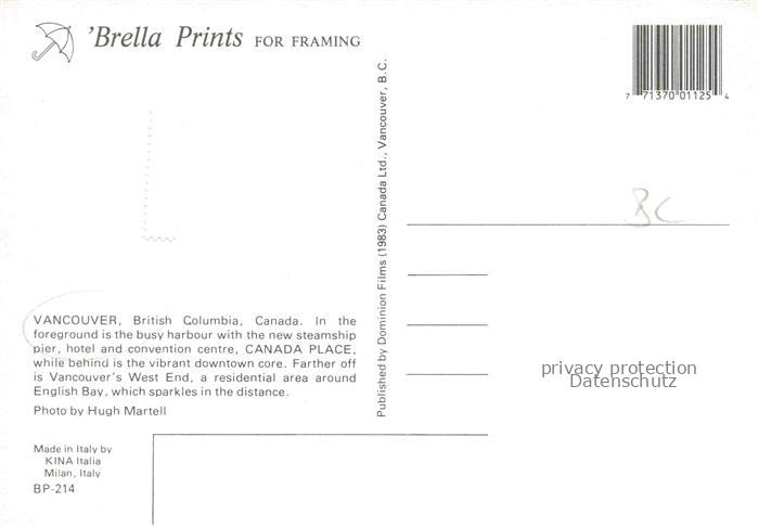 74091424 VANCOUVER BC Canada Harbour Hotel and Convention Centre Canada Place Fliegeraufnahme postalisch nicht gelaufen Erhaltung siehe scans [WerneD78] KatCode: 14110