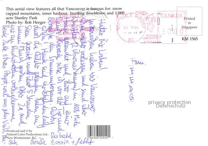 74096694 old postcard VANCOUVER BC Canada Stadtansicht Luftbild postalisch gelaufen Erhaltung siehe scans [IrynaD87] KatCode: 14110
