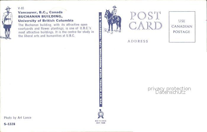 Vancouver British Columbia Buchanan Building University of British Columbia postalisch nicht gelaufen Erhaltung siehe scans