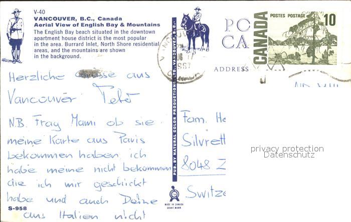 old postcard Vancouver British Columbia English Bay and Mountains aerial view postalisch gelaufen Erhaltung siehe scans
