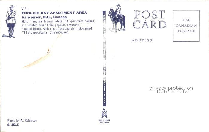 Vancouver British Columbia English Bay Apartment Area postalisch nicht gelaufen Erhaltung siehe scans