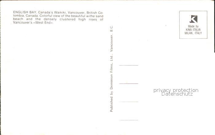 Vancouver British Columbia English bay Canadas Waikiki beach postalisch nicht gelaufen Erhaltung siehe scans