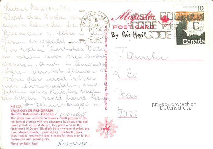 old postcard Vancouver British Columbia Fliegeraufnahme postalisch gelaufen Erhaltung siehe scans [WerneD78 kt117box]