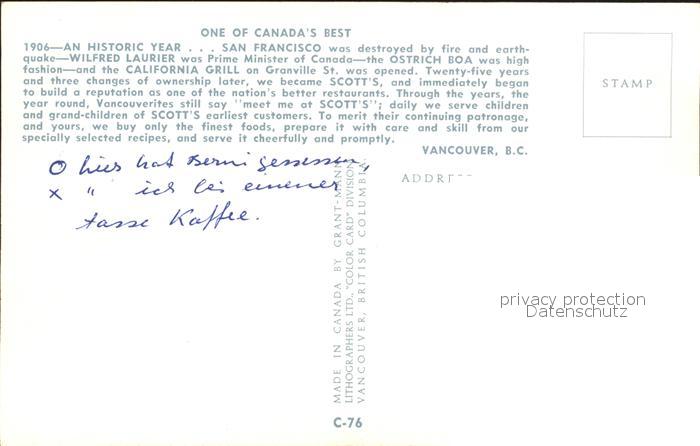 Vancouver British Columbia Historic Year San Francisco postalisch nicht gelaufen Erhaltung siehe scans
