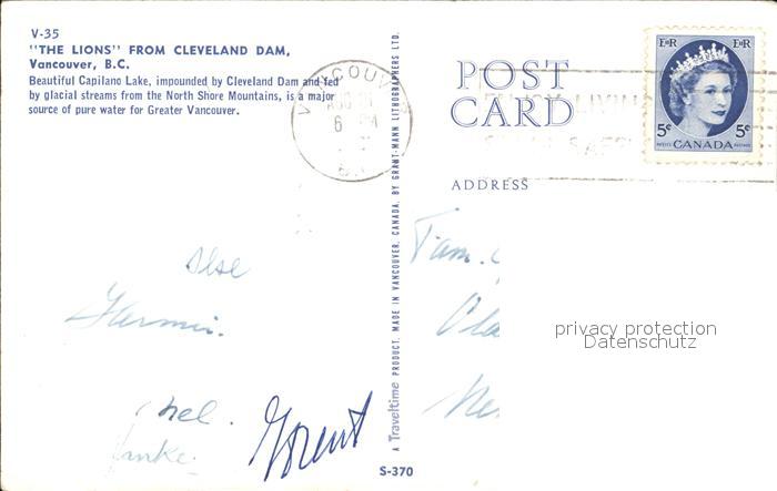old postcard Vancouver British Columbia Lions postalisch gelaufen Erhaltung siehe scans