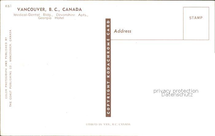 Vancouver British Columbia Medical Dental Building Georgia Hotel postalisch nicht gelaufen Erhaltung siehe scans