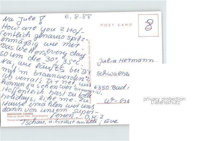 Vancouver British Columbia The Trade and Convention Centre postalisch nicht gelaufen Erhaltung siehe scans