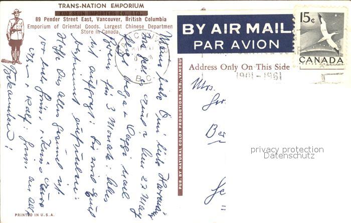old postcard Vancouver British Columbia Trans Nation Emporium Chinese Department Store postalisch gelaufen Erhaltung siehe scans