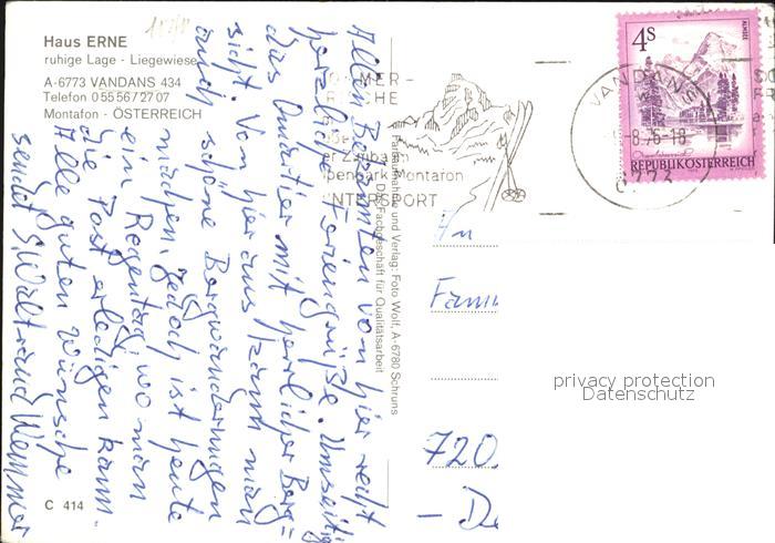 72491600 alte Postkarte Vandans Vorarlberg Haus Erne postalisch gelaufen Erhaltung siehe scans KatCode: 11390341080129