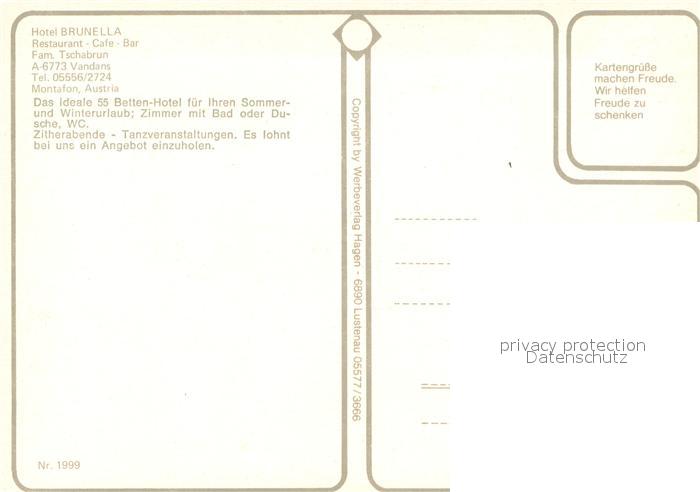 73656997 Vandans Vorarlberg Hotel Brunella postalisch nicht gelaufen Erhaltung siehe scans [WerneD78] KatCode: 11390341080129