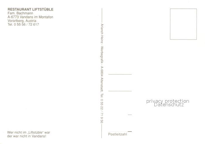 73614077 Vandans Vorarlberg Restaurant Liftstueble Gaststube Terrasse postalisch nicht gelaufen Erhaltung siehe scans [WerneD78] KatCode: 11390341080129