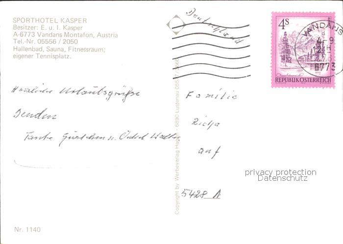 71962532 alte Postkarte Vandans Vorarlberg Sporthotel Kasper postalisch gelaufen Erhaltung siehe scans KatCode: 11390341080129