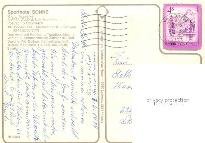 73523793 alte Postkarte Vandans Vorarlberg Sporthotel Sonne postalisch gelaufen Erhaltung siehe scans [LiesaD40] KatCode: 11390341080129