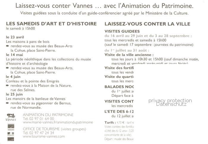13789216 Vannes 56 Collection Villes et Pays d Art et d Histroire postalisch nicht gelaufen Werbekarte (keine Postkarte) Erhaltung siehe scans [FriedD77] Werbekarte (keine Postkarte) Frie Katcode 11170056356260