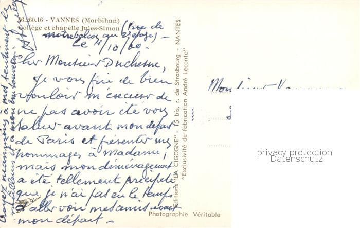 13799841 Vannes 56 College et chapelle Jules Simon postalisch nicht gelaufen Erhaltung siehe scans [WerneD78] Wern Katcode 11170056356260