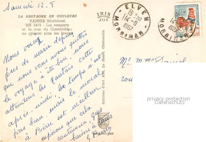 13790591 Vannes 56 Les remparts et la tour du Connetable au premier plan les lavoire postalisch gelaufen Erhaltung siehe scans [WerneD78] carte postale Wern Katcode 11170056356260