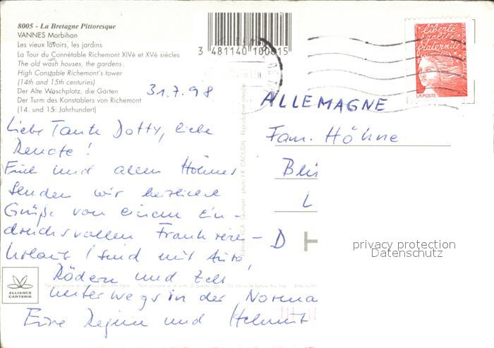 12517610 carte postale Vannes 56 Les Vieux Lavoirs postalisch gelaufen Erhaltung siehe scans KatCode: 11170056356260