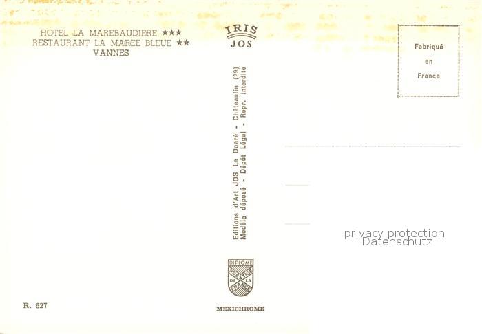 13516692 Vannes 56 Restaurant la Maree Bleue Hotel la Marebaudiere postalisch nicht gelaufen Erhaltung siehe scans [KathaD81] KatCode: 11170056356260