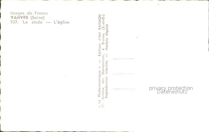 12054933 Vanves Le Stade Eglise Statue Wappen postalisch nicht gelaufen Erhaltung siehe scans KatCode: 11170092192075