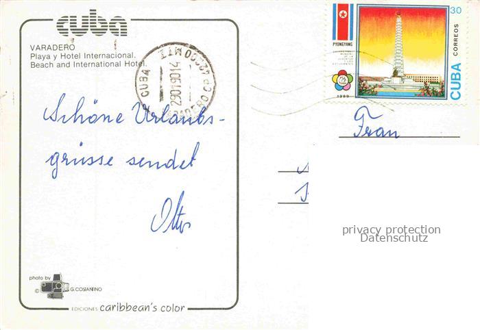 74096723 old postcard Varadero Cuba Beach International Hotel postalisch gelaufen Erhaltung siehe scans [IrynaD87] KatCode: 16160