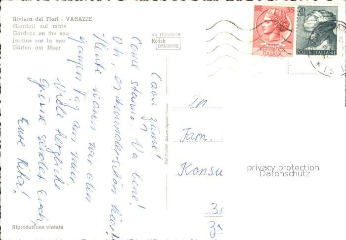 old postcard Varazze Garten am Meer postalisch gelaufen Erhaltung siehe scans