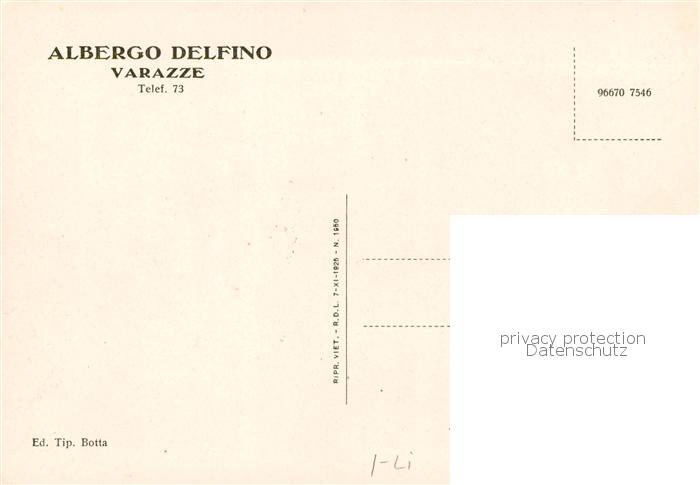 73850313 Varazze Liguria IT Albergo Delfino postalisch nicht gelaufen Erhaltung siehe scans [WerneD78] Wern Katcode 11240