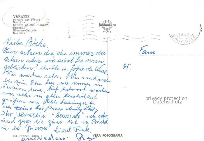74076319 old postcard VARAZZE Liguria IT Riviera dei Fiori Spiaggia Nautilus postalisch gelaufen Erhaltung siehe scans [FriedD77] KatCode: 11240