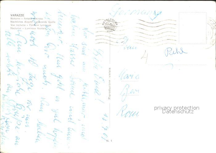 old postcard Varazze Notturno fontana luminosa postalisch gelaufen Erhaltung siehe scans [WerneD78]