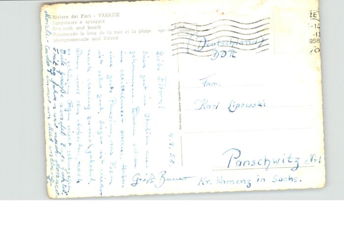 old postcard Varazze Riviera Fiori Lungomare Spiaggia Strand postalisch gelaufen