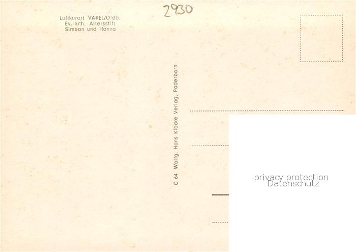 73870808 Varel Jadebusen Ev luth Altersstift Simeon und Hanna postalisch nicht gelaufen Erhaltung siehe scans [WerneD78] KatCode: 11110003455026