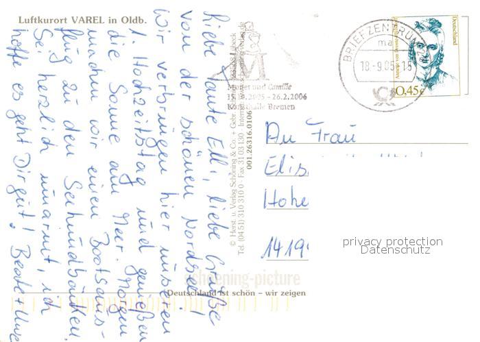73201773 alte Postkarte Varel Jadebusen Leuchtturm Windmuehle Hafen Denkmal Cafe postalisch gelaufen Erhaltung siehe scans [KathaD81] KatCode: 11110003455026