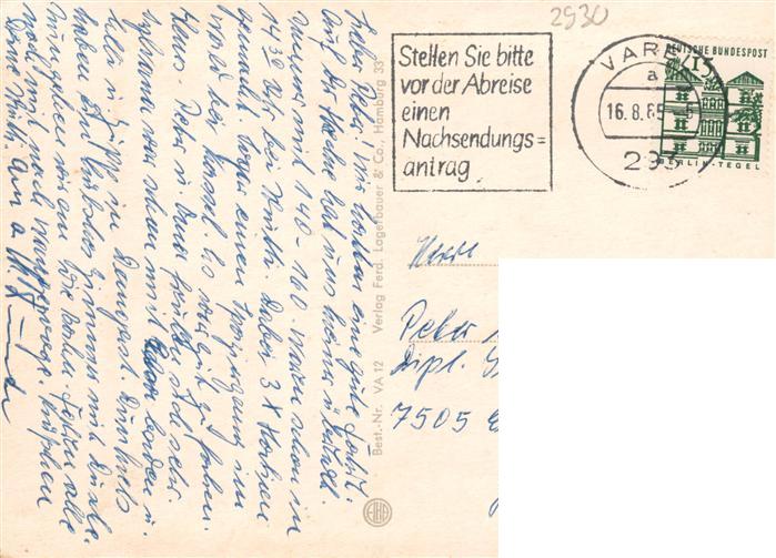 73934553 alte Postkarte Varel Jadebusen Muehlenstrasse Hafen Neuestrasse Amtsgericht Eingang Schwimmbad Altersstift Kirche Bahnhof postalisch gelaufen Erhaltung siehe scans [WerneD78] KatCode: 11110003455026