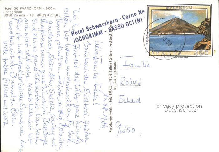 old postcard Varena Val di Fiemme Hotel Schwarzhorn Jochgrimm Alpenflora postalisch gelaufen Erhaltung siehe scans