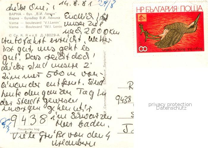 old postcard Varna Warna Bulgaria Boulevard Lenin postalisch gelaufen Erhaltung siehe scans [WerneD78]