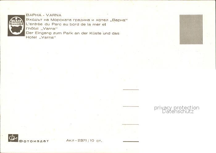 Varna Warna Eingang zum Park an der Kueste Hotel Varna postalisch nicht gelaufen Erhaltung siehe scans