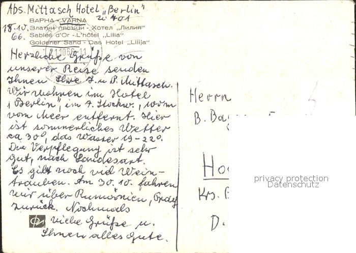 old postcard Varna Warna Goldener Sand Hotel Lilia postalisch gelaufen Erhaltung siehe scans